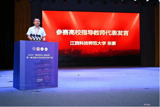 我校教师张豪代表参赛高校指导教师代表发言,张豪表示。材料分析大赛是一场知识与实践的盛宴,每一个数据、每一次分析,都是你们探索材料世界的足迹。这场比赛的意义,不在于胜负,而在于你们敢于拿起工具解读未知的勇气,在于对每一个数据严谨求实的态度——这正是新时代“工匠精神”的底色。愿你们以今日为契机,在探索中收获新知,在挑战中突破自我,在实践中铸就灵魂。西南交通大学选手邱琳翔同学代表全体参赛选手发言。