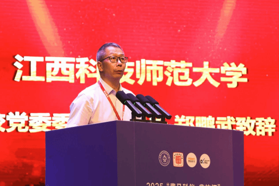 江西科技师范大学副校长郑鹏武出席开幕式并致辞。他代表学校全体师生,向莅临的领导、嘉宾、参赛选手、合作伙伴及工作人员表示感谢与欢迎。他表示,学校作为全国重点建设的职业技术师范院校,始终秉持 “明德精业” 校训,重视实践创新人才培养,在全国金相赛事中屡获佳绩。承办此次决赛,学校深感荣幸与责任,将全力保障赛事顺利进行。希望选手在赛场中充分展现新时代材料学子的扎实功底、工匠精神与创新风采,并预祝大赛取得圆满成功。