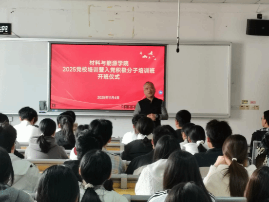 11月4日下午,材料与能源学院2025党校培训暨入党积极分子培训班开班仪式在3304教室顺利举行。学院党委书记向军淮、副书记赵令智莅临现场。