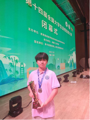 竞赛夺魁,实力彰显。他在专业竞赛中屡创佳绩:2025年,他斩获“永新杯”第二届全国大学生金相大会个人二等奖、团体三等奖,以及江西省大学生金相技能大赛三等奖,以创新与实践能力展现了材料学子的风采。